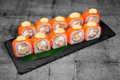 БРИОНИ РОЛЛ ПРЕМИУМ 10 ШТ. 590 ₽ В корзину Купить в 1 клик В корзину Купить в 1 клик Состав: лосось, креветка , сыр сливочный, соус спайси. 240 ГР. 10ШТ. Состав: лосось, креветка , сыр сливочный, соус спайси. 240 ГР. 10ШТ.