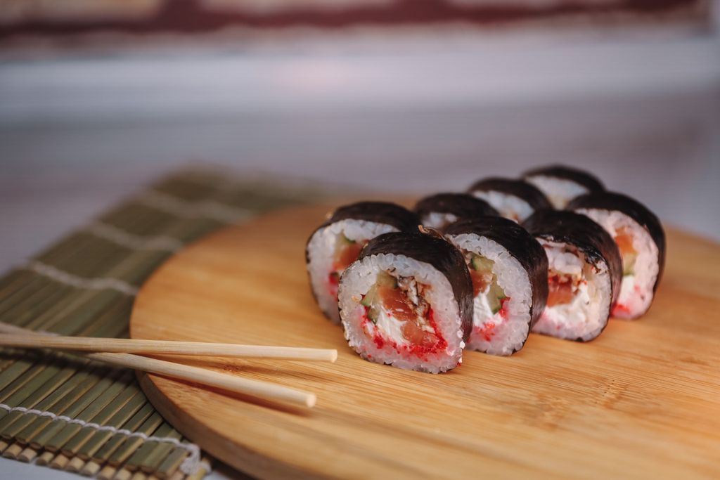 СОСТАВ: РИС, ИКРА МАСАГО,УГОРЬ КОПЧЕНЫЙ,ЛОСОСЬ МАЛОСОЛЕНЫЙ ,СЫР СЛИВОЧНЫЙ,ОГУРЕЦ.